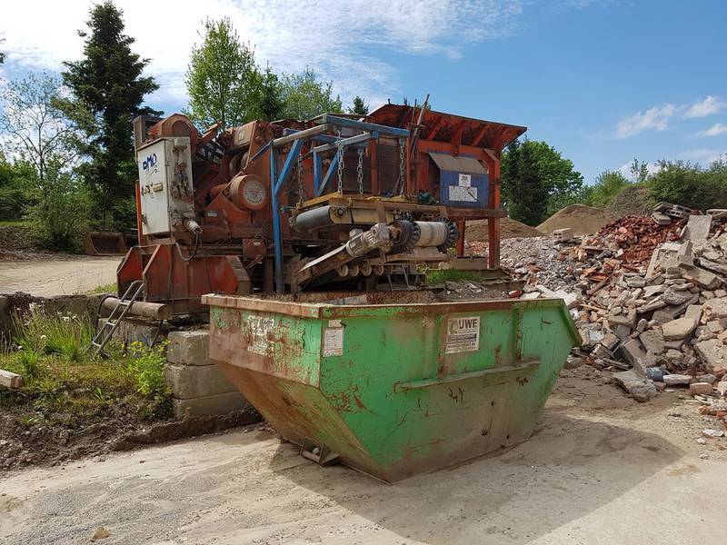 Gebrauchte Brechanlage als kompakte Einheit. Der Brecher besteht aus einer Vibrorinne mit anschließendem Backenbrecher Fabrikat BMD. Ein installiertes Vorsieb nimmt das kleinere Material bereits vorher raus und trägt es über ein Band auf Halde aus. Die Einlauföffnung des Brechers ist 700x500mm. Es ist ein Magnetband und ein weiteres Haldenband für das gebrochene Material integriert. Die Brechanlage ist komplett inkl. Schaltschrank und sofort verfügbar.
