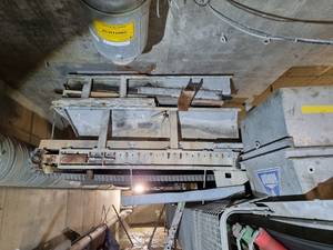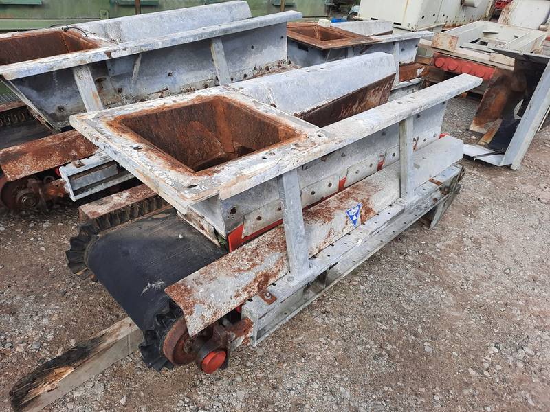 Gebrauchtes Dosierband mit einer Gurtbreite von 650 mm und einem Achsabstand von ca. 2.000mm. Das Dosierband ist in verzinkter Ausführung inkl. Wellkantgurt inkl. Aufgabegosse 500x500 (BxL), Materialkontrolltaster und Gurtabstreifer.