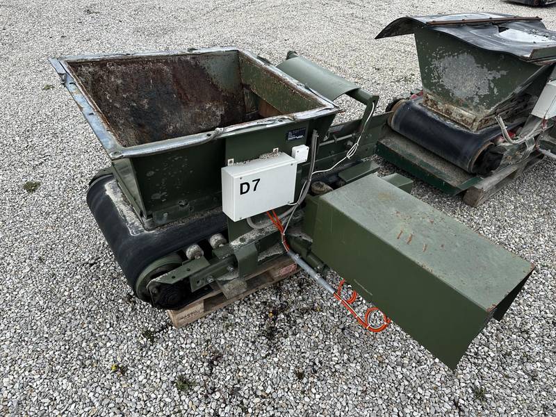 Gebrauchte Dosierbänder mit einer Gurtbreite von 650 mm und einem Achsabstand von ca. 1.200mm. Die Dosierbänder sind mit Glattgurt und inkl. Aufgabegosse 700x700 (BxL), Materialkontrolltaster und Gurtabstreifer.