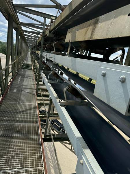 Gebrauchte Förderbandstraße bestehend aus einer Brückenkonstruktion und 3 einzelnen Förderbändern mit einer Gurtbreite von 500mm und einem Achsabstand von 50 m / 100 m / 150 m. Die freitragende Stützweite der Brückenkonstruktion beträgt ca. 50m. Die Bänder sind inklusive Brückenkonstruktion mit Laufsteg, A-Stützen, Gurtabstreifer und gummierter Antriebstrommeln. Eine Einzelabnahme der Bänder wäre möglich! Die Förderbänder sind sofort verfügbar!