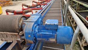 Gebrauchtes Förderband Gurtbreite 650mm Achsabstand 21,2m. Ausführung mit Laufsteg und 11 kW SEW Aufsteckgetriebemotor. Das Band verfügt über eine Bandwaage, die dazugehörige Steuerung ist jedoch nicht mehr vorhanden. Das Band ist inkl. Hartmetallabstreifer, Aufgabegosse, Abwurfkasten, gummierter Antriebstrommel und inkl. 2 Stück Stützen. Der Gurt ist inklusive und einmal geschnitten. Die Bandabdeckung ist nicht mehr vorhanden.