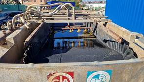 Gebrauchter Aquamator / Hydrobandscheider vom Fabrikat GfA, Typ AK 3,5/1600/200. Der Aquamator wird zum Auswaschen von Verunreinigungen mit leichterer Dichte (wie zum Beispiel Holz) aus Kies, Bauschutt und Schotter verwendet.
