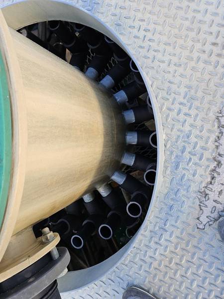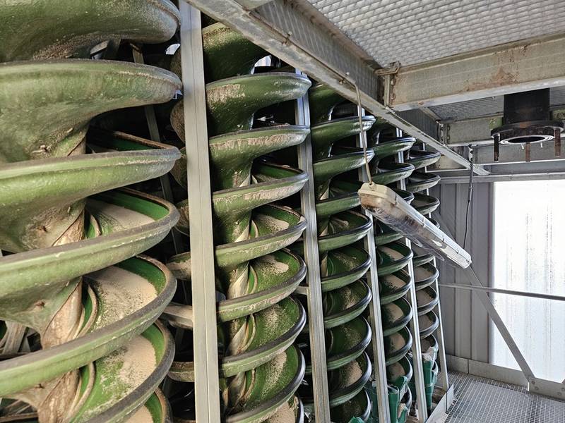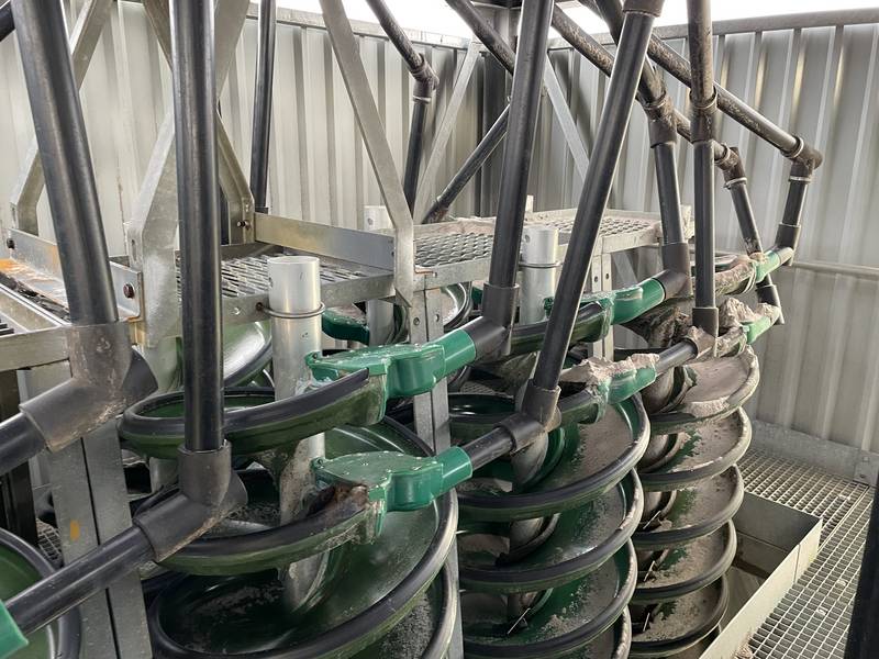 Gebrauchte Anlage mit 2x10 Stück Multotec Sortierspiralen /Wendelscheidern für die Abscheidung von Schwermineralien. Die Anlage hat 2 Verteilereinheiten, wobei jede davon auf eine Spiralbank von 10 Stück Sortierern gelangt.