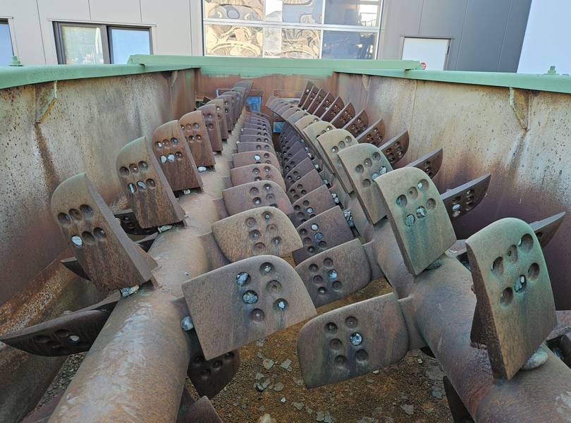 Gebrauchte Doppelwellen-Schwerterwäsche Fabrikat IBAG. Die Schwerterwäsche ist eingerichtet zum Reinigen von Gestein, welches Lehmteile enthält oder mit einer schwer löslichen Kruste überzogen ist. Die Maschine ist sofort verfügbar.