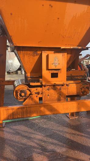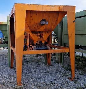 Gebrauchte Aufgabetrichter mit ca. 8 m³ Inhalt. Der Trichter ist inkl. dem dazugehörigenDosierband Gurtbreite 650 mm, Achsabstand ca. 1.000 mm. Es sind 3 Stück vorhanden.