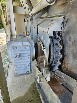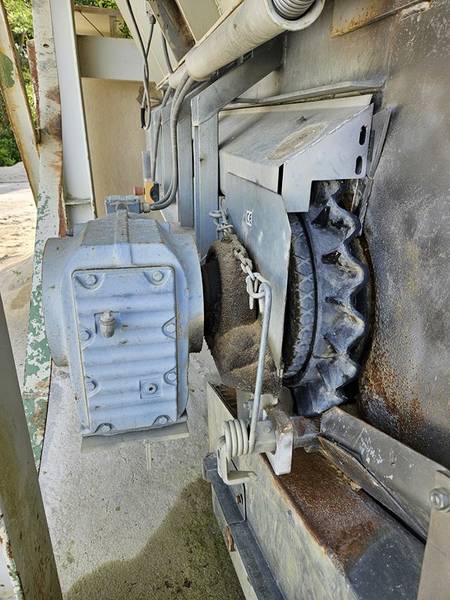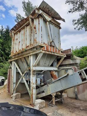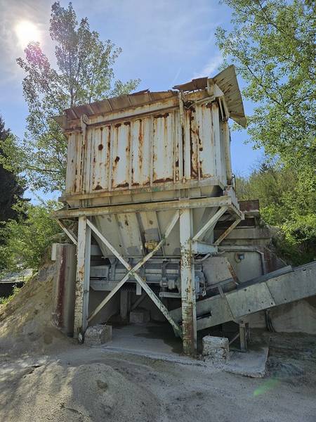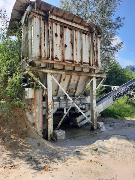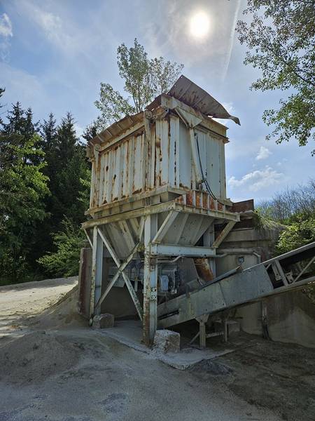 Gebrauchter Aufgabetrichter mit ca. 15 m³ Inhalt in geschraubter Konstruktion. Das Dosierband GB650 hat einen einen Achsabstand von 2.250 mm und wird durch einen 2,2 kW SEW Aufsteckgetriebemotor angetrieben. Der Trichterauslauf hat eine Abmessung von ca. 1.500 x 480 mm. Der Aufagbetrichter ist inklusive hydraulischen Kipprost mit einer Spaltweite von ca. 100 mm, inkl. Dosierband, Steuerung und Unwuchtrüttelmotor.
