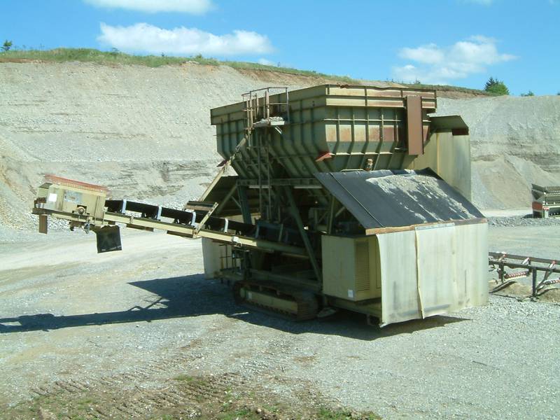 Sonstiges: Trichter komplett auf Raupenfahrwerk und Abzugsband. Trichter mit Überkornrost und Rüttelmotoren an den Trichterwänden